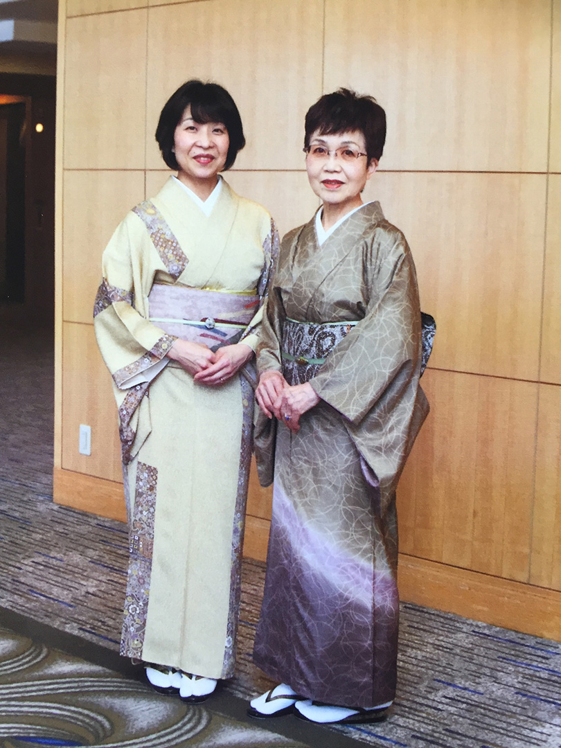 青野 和美さん着物のイベント会場で友人の松岡有規子さんとプロのカメラマンに …