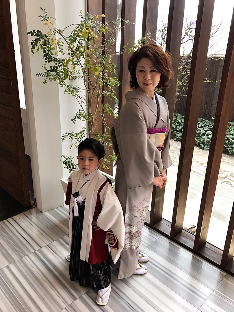 渡邊 愛香さん3歳の息子の753。着物は長男の時に購入し,長男と次男も着て …