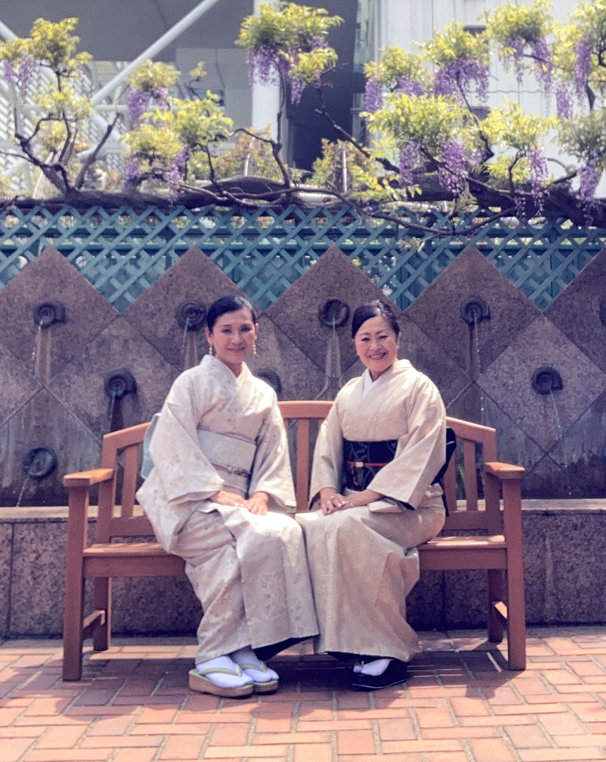 山田 由香里さんフラダンス仲間の友人と。お着物好きの二人でランチがでらお散歩 …
