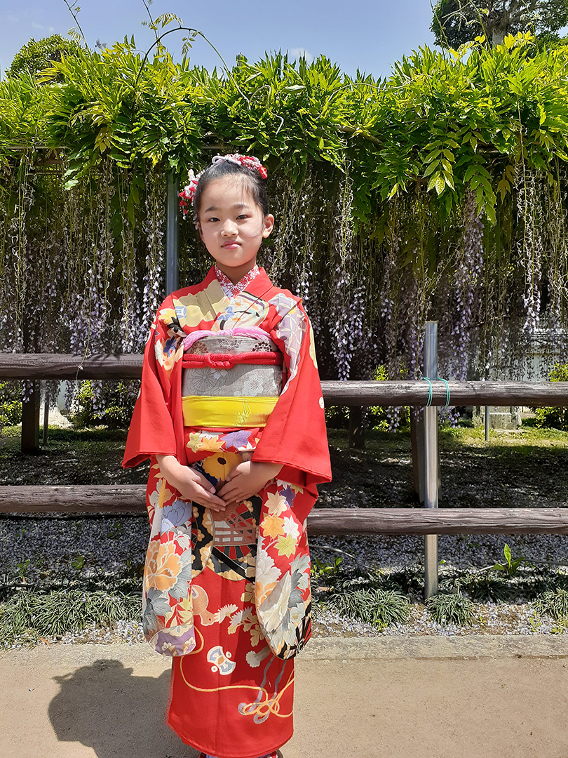 小栗 幸恵さん七五三を迎えた娘達。私が子供の頃に着た着物と手作りしたつまみ …