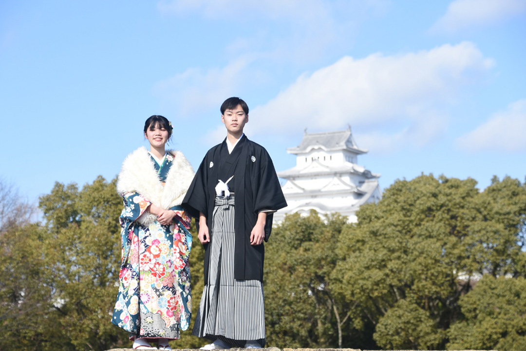 田中 耕二さん成人式の前撮りからの1枚です。夕暮れの光がきれいで境内の入り …