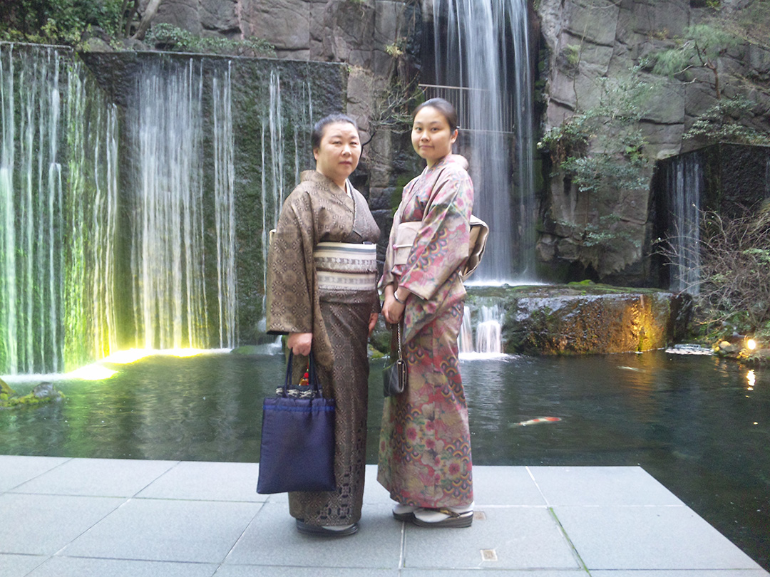 田中 千鶴さんホテルの待ち合いで母と娘がおすまし …