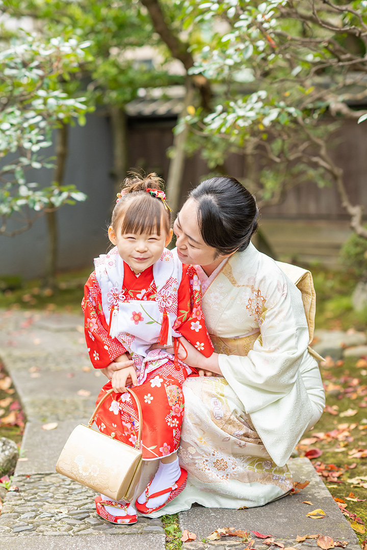 伍代 夏子さんさやさやと葉擦れの音が聞こえてくるような写真です。 お嬢さんが苦しくないようにと帯を手作りされたとのこと…。 お母様の愛が溢れ出ていますね。 これからもお揃いのコーデで沢山の思い出を作って下さい。 -