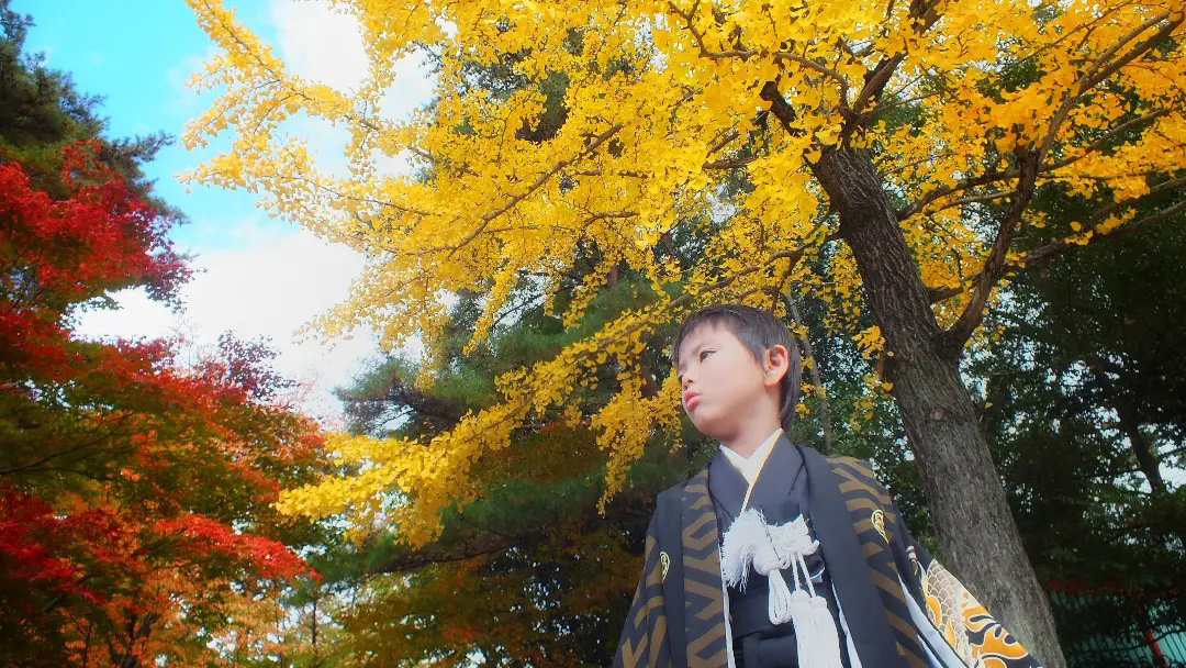 沖 一帆さん七五三で着物を初めて着る息子。どこか映画のヒーローになったよ …
